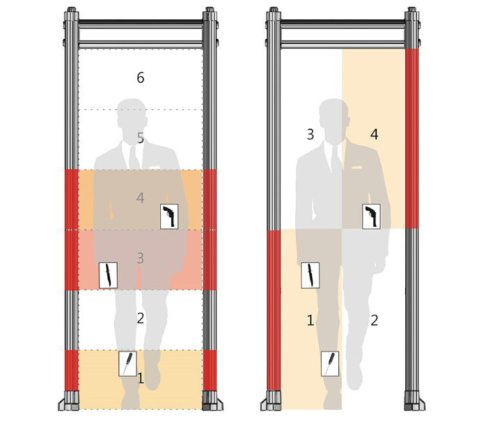 随身金属物可排除功能 ● 双组高亮度红绿色数码管显示功能 / 采用5.7寸液晶显示屏/长条形 / 集成四按键面板操作模式 ● 一键式遥控操作模式 / 多台联网接口 ● 外接控制报警装置端口 ● 二次开发端口/升级端口 ● 通过人数统计功能 ● 报警次数统计功能 ● 通过人数进出查询功能 / 系统双重密码保护功能 ● 多区位同时探测同时报警功能 ● 大件物品探测智能区分功能 ● 超亮度贴片智能分区报警指示灯 ● 超亮度贴片双排区位指示灯 ● 10个可选择工作频段 / 50个可选择工作频段 ● 报警声音静音模式设置 ● 报警声音大小可调模式 ● 10种报警声音选择模式 ● 前后单边区位报警指示灯转转功能 ○ 前面单边区位报警指示灯 / 前面四区位报警指示灯 ● 前后四区位报警指示灯 ● 各探测防区灵敏度可调 ● 各区灵敏度0—200级可调 ● 各区灵敏度0—120级可调 / 安全等级1—6可选择 / 安全等级1—20可选择 ● 独立4探头交互式4防区 ● 独立12探头交互式12—18防区/选配 ○ 电池续航时长2小时/选配 ○ 电池续航时长8小时/选配 ○ 恢复出厂设置功能 ●