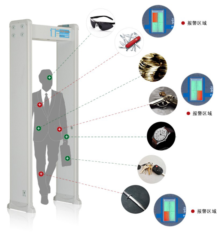 系统具有显示环境监测数据功能 ; 高性能、高灵敏、高稳定性 ; 具备系统联网,可通过1台PC管理多台设备。 预先设定金属物品重量、体积、大小、部位、排除钥匙、首饰、皮带扣等误报警。 符合EMC电磁辐射标准,采用弱磁场技术,对心脏起搏器佩戴者、孕妇、软盘、胶卷、录像带等无害。
