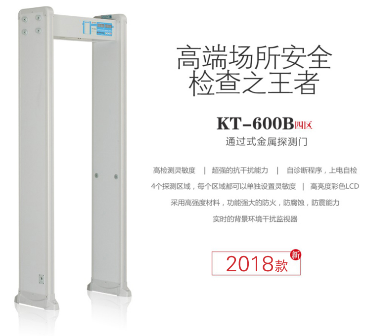 产品型号 2017/KT-600B四区定制款 立置外形尺寸 2230*450*820mm 立置通道尺寸 2000*700*335mm 主机箱包装尺寸 790*230*290mm 探测门板包装尺寸 2270*500*230mm 主机箱/探测门板净重 40.7kg 主机箱/探测门板毛重 45.9kg 工作电压 AC90V~240V 50/60Hz 功耗 20W 工作频率范围 1—50个频段 工作环境温度 -20℃~55℃ 安装环境 宽100cm*长200cm(无金属最小范围)片状横向 区位探测金属物精度范围 最高灵敏度≥10g金属 备注:表中"●"表示有此配置,"○"表示可以选配,"/"表示无此配置。